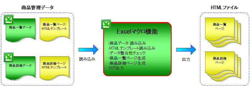 Excel上で動作するマクロ言語(VBA:VisualBasic for Applications)でプログラムを実装します。